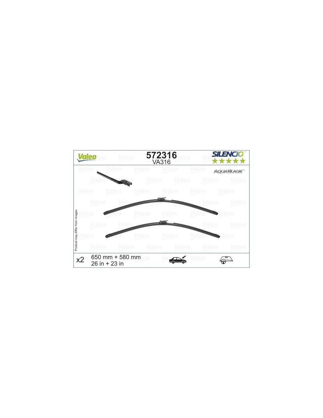 Scheibenwischer Set Valeo Aquablade VA316. Code: VA316, Länge: 650/575.