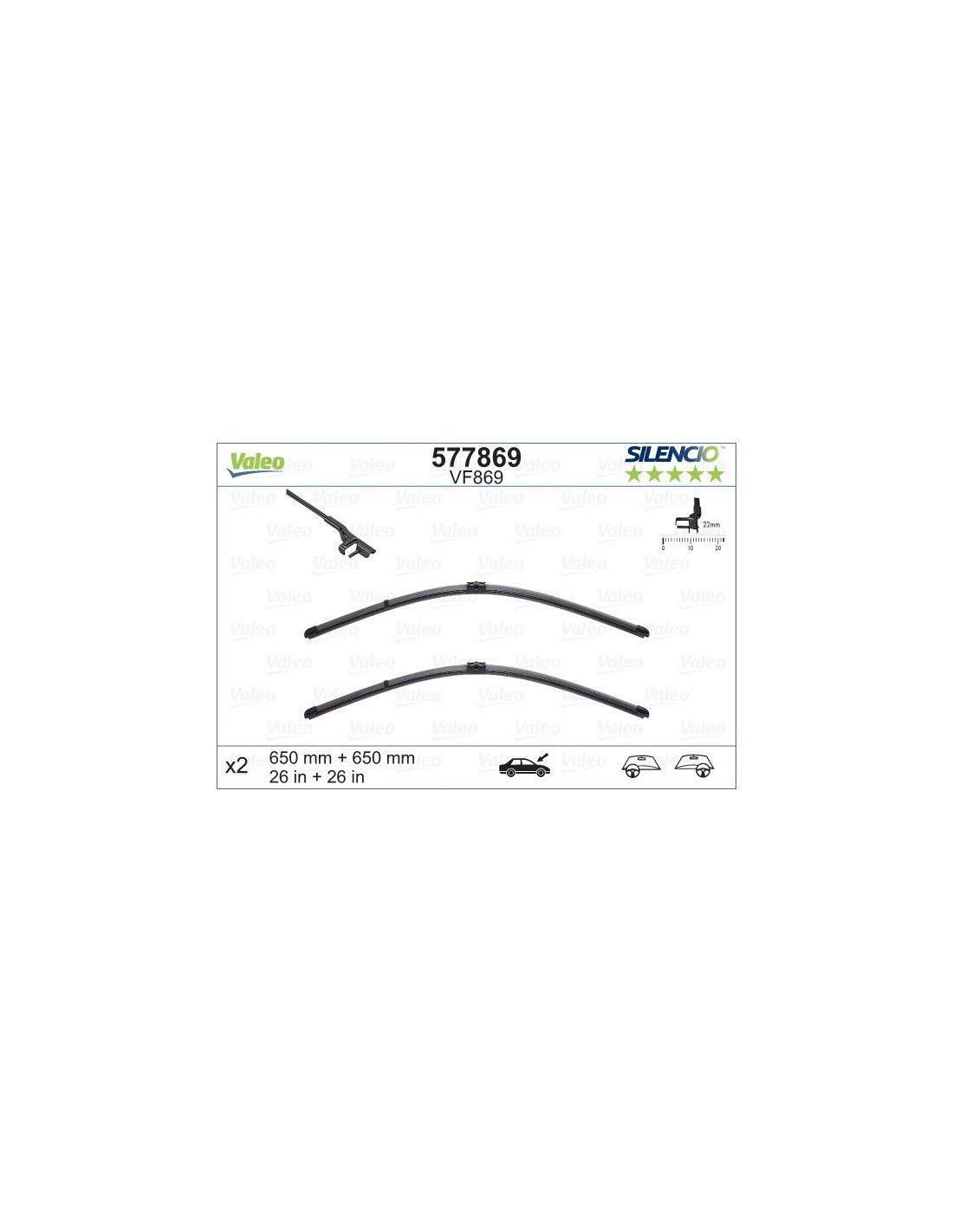 Scheibenwischer Set Valeo Silencio VF869. Code: VF869, Länge: 650/650.