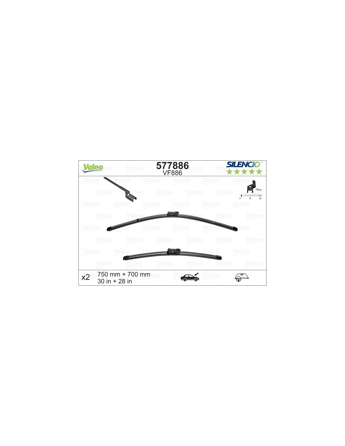 Scheibenwischer Set Valeo Silencio VF886. Code: VF886, Länge: 750/700.